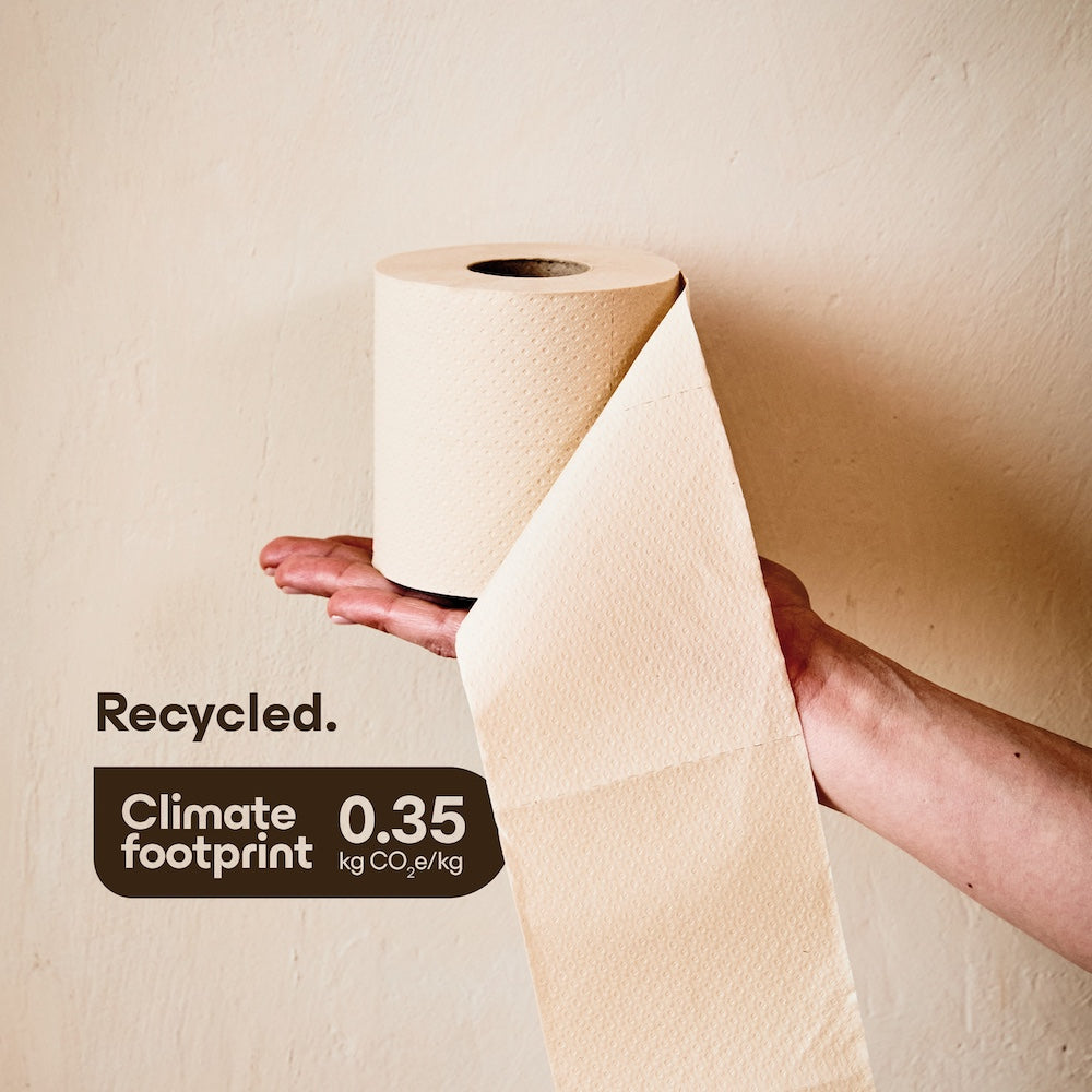 It starts with what goes into our rolls. For our recycled rolls, we measure emissions from collecting, sorting, and transporting post-consumer cardboard before it’s given a second life. By sourcing recycled materials close to our factory, we keep transport emissions lower than standard recycled paper supply chains.